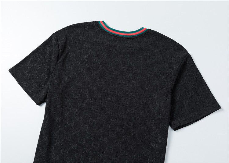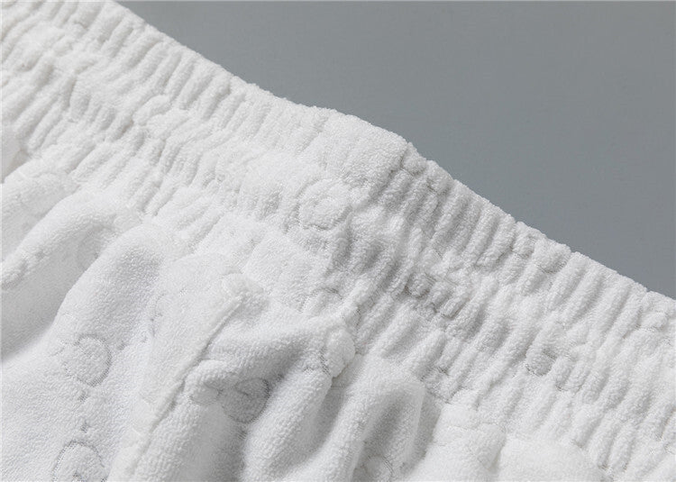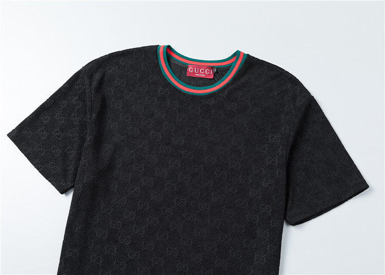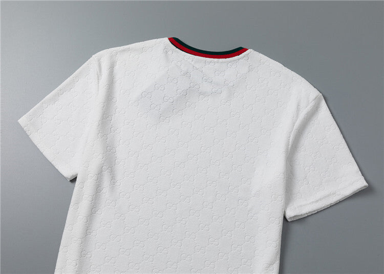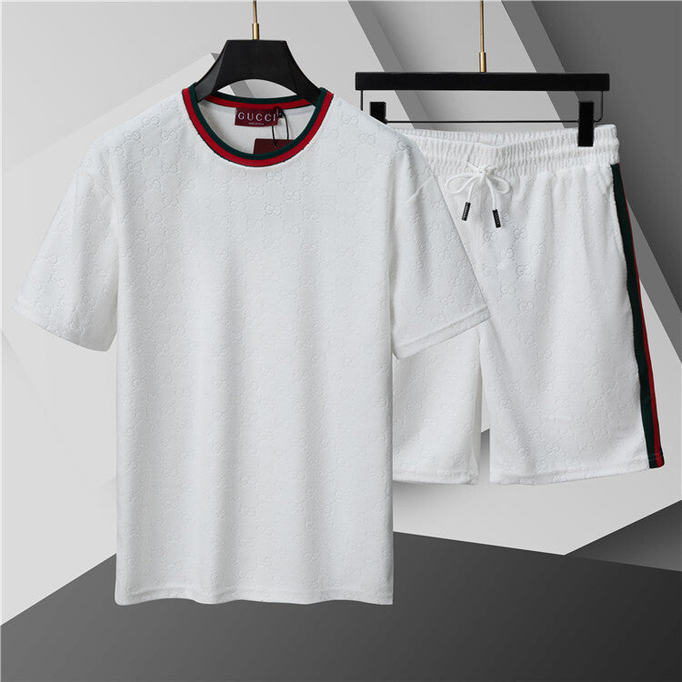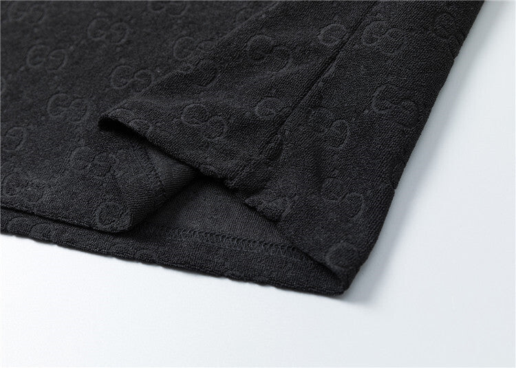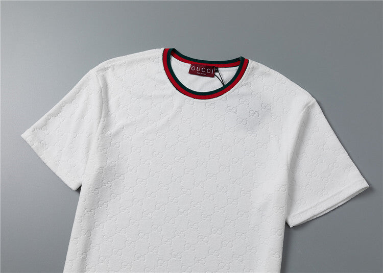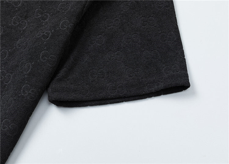 Questo coordinato Gucci unisce comfort e stile iconico attraverso un morbido tessuto jacquard che riproduce il motivo GG in rilievo su tutta la superficie, disponibile in versione bianca o nera. Questo completo è pensato per chi desidera un look casual ma raffinato, capace di coniugare lusso e praticità in maniera perfetta.